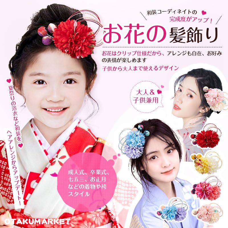 【着物 髪飾り 用途】お花の髪飾りです。アップヘア、サイドアップ、お団子、編み込みなど人気のまとめ髪の補助やアクセントにオススメです。夏祭り 花火大会 浴衣デート お祭り 盆踊り 納涼祭 浴衣女子会 カジュアル 浴衣姿 コスプレ 卒園式 七五三 お正月お祝い事 桃の節句 結婚式 パーティー 謝恩会 成人式 卒業式などにオススメです。