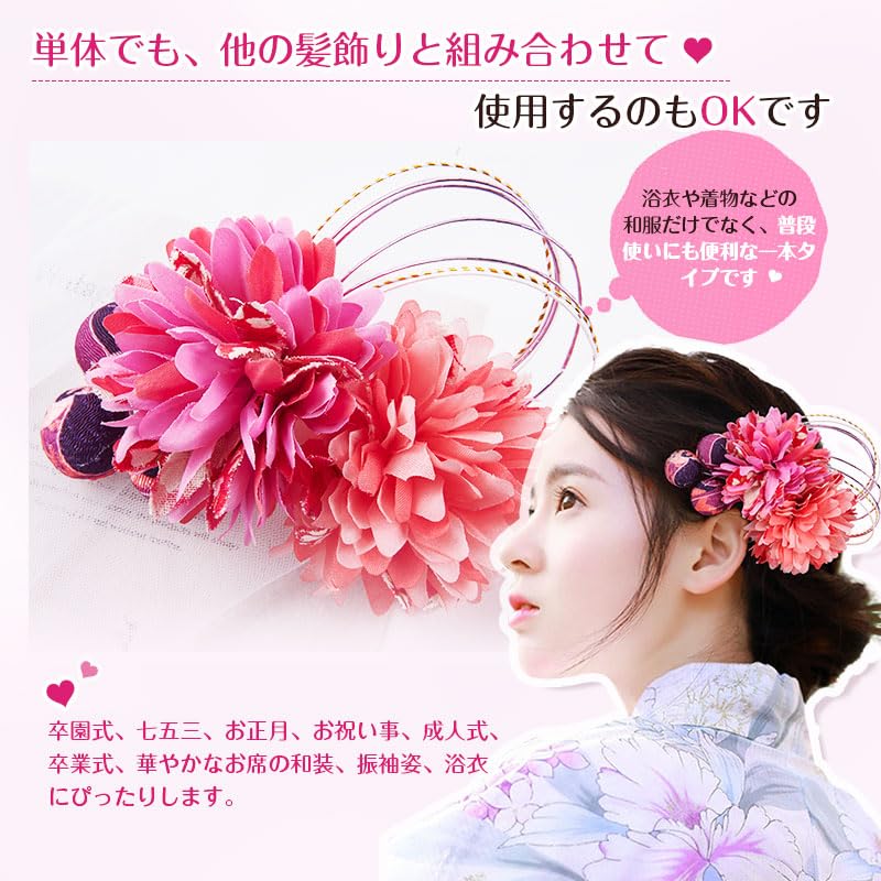 【【和装髪飾り】髪飾りは簡単に取り付けられやすいです。浴衣や着物などの和服だけでなく、普段使いにも便利な一本タイプです。綺麗に梱包しますので、ギフトとしてお勧めます。