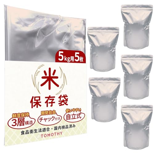 TOMOTHY 米 保存袋 5kg5枚 お米 保存容器 米袋 食品保存容器 アルミ袋 特大 チャック付き 食品衛生法適合品 遮光袋 30×42cm 5枚