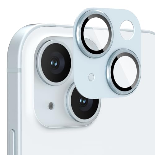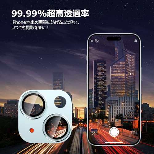Podick レンズカバー iPhone 15 /15 Plus用 カメラフィルム アルミ合金製 9H強化ガラス 傷防止 レンズ保護 耐衝撃 アイフォン15 /15 プラス 用 カメラ保護 高透過率 黒縁取り 露出オーバー防止 カメラレンズプロテクター ブルー