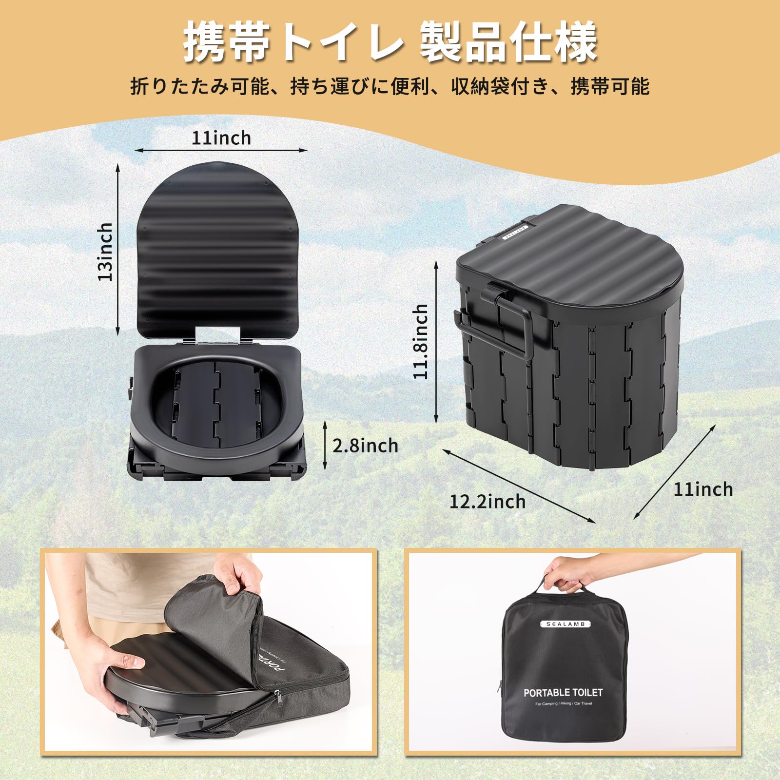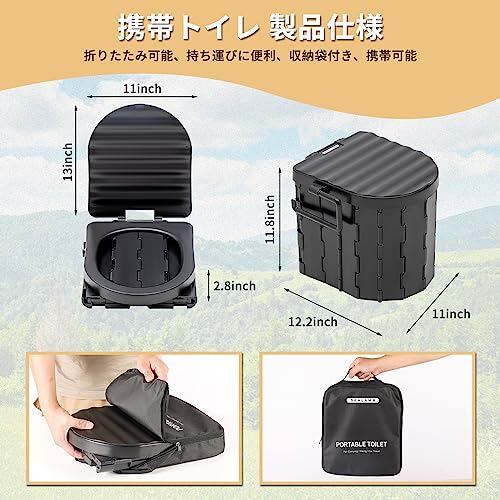 SEALAMB 最新型簡易トイレ、携帯トイレ、防災用品、携帯トイレ、耐荷重150kg、折りたたみ可能、水洗い可能、キャンプ、登山、旅行、アウトドアに最適、ゴミ袋、収納袋付き黑
