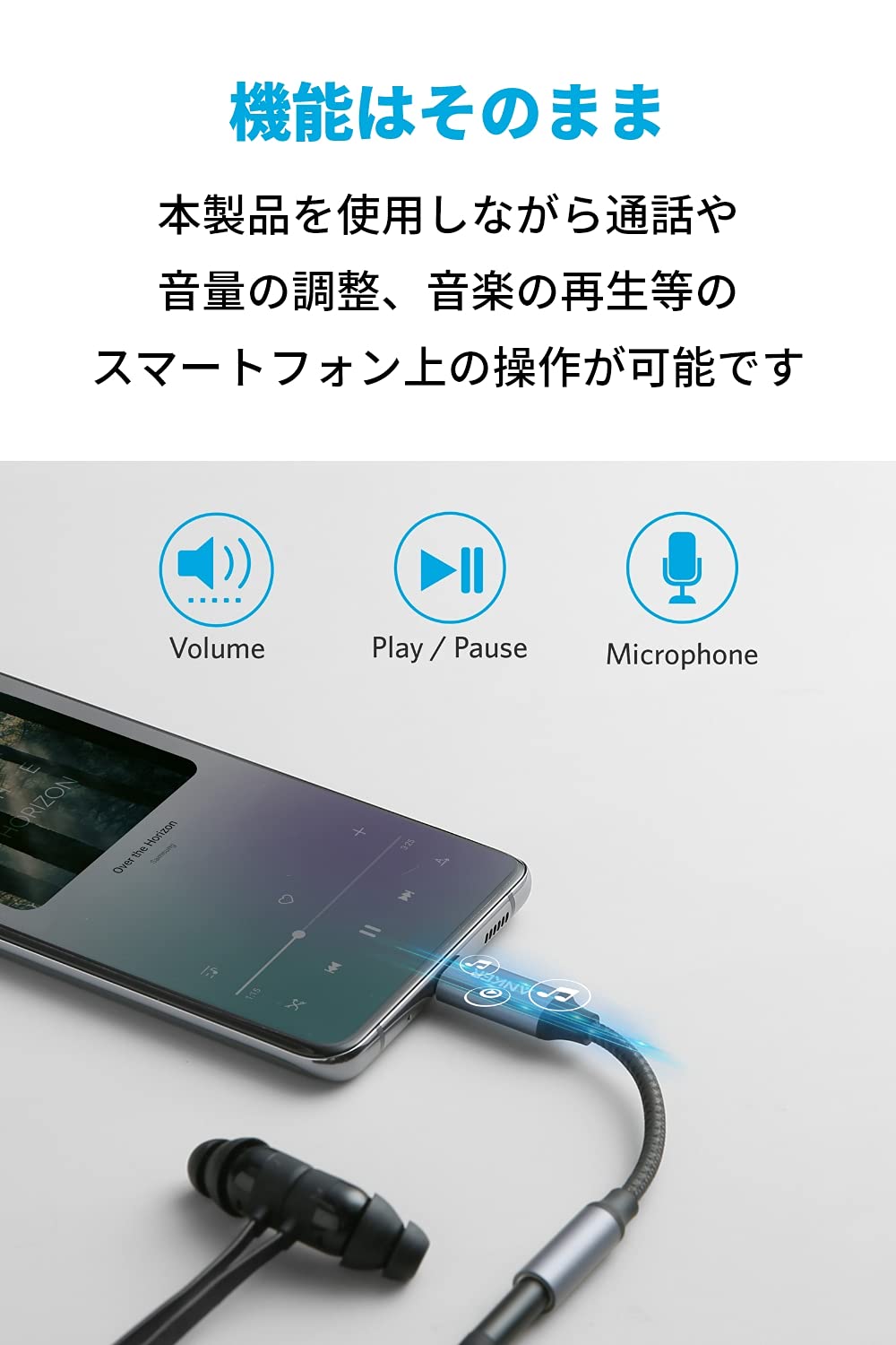機能はそのまま:本製品を使用しながら、通話や音量の調整、音楽の再生等のスマートフォン上の操作が可能です。