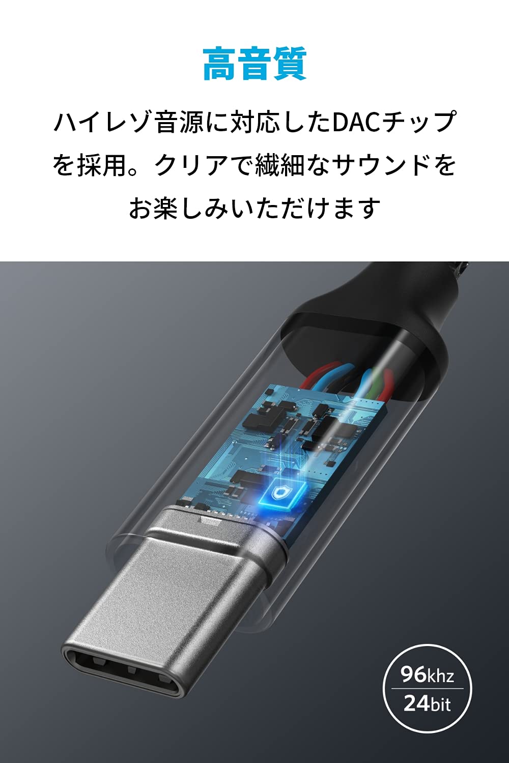 高音質:ハイレゾ音源に対応。お使いのUSB-C機器から幅広いヘッドホンやイヤホンから、クリアで繊細なサウンドをお楽しみいただけます。