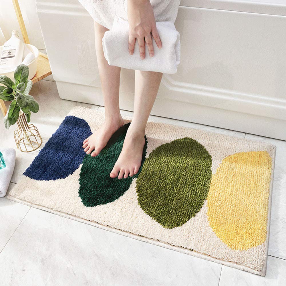 SYitong玄関マット 室内 おしゃれ 北欧 ドアマット バスマット 足拭きマット グリーンリーフ 廊下 洗面所 業務用 家庭用 ふわふわ 柔らか 泥落としラグ 滑り止め 吸水 洗える 速乾 抗菌防臭 耐磨耗性 40×60CM 50×80CM (ベージュ 40×60cm)