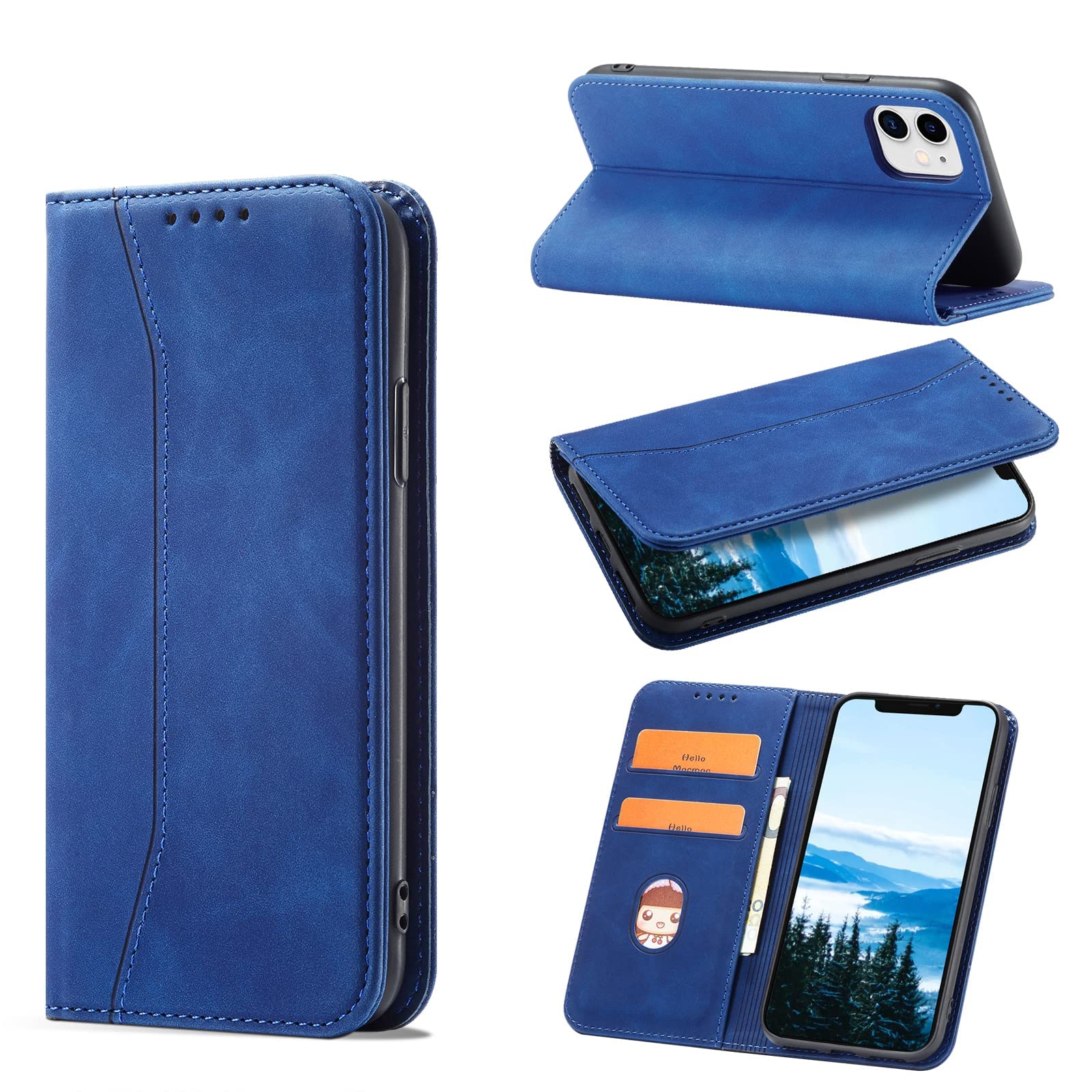 KWATUNG iphone 12 用 ケース 手帳型 おしゃれ 肌感レザー iphone 12pro 用 ケース 手帳型 耐衝撃 内蔵マグネット iphone12 用手帳型ケース カード収納 スタンド機能 アイフォン 12用 スマホケース 全面保護【6.1インチ】ブルー