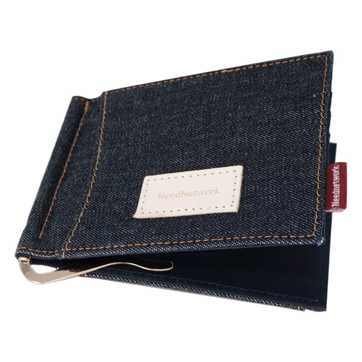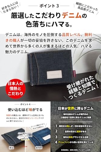 [ニードネットワーク] 日本が誇るデニム マネークリップ メンズ 小銭入れ付き 二つ折り ICカードポケット 財布 札入れ 軽い シンプル 無地 薄型
