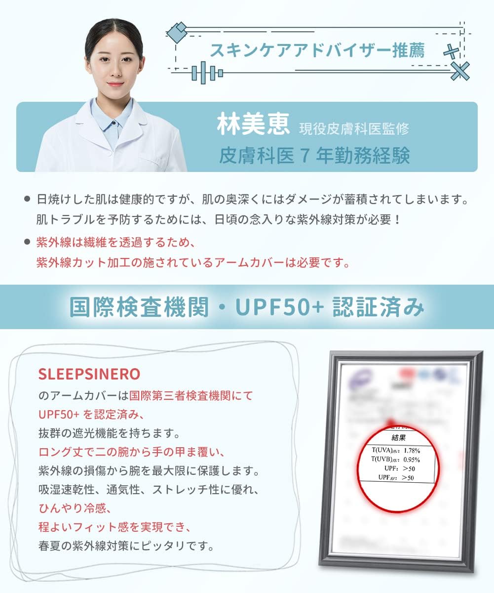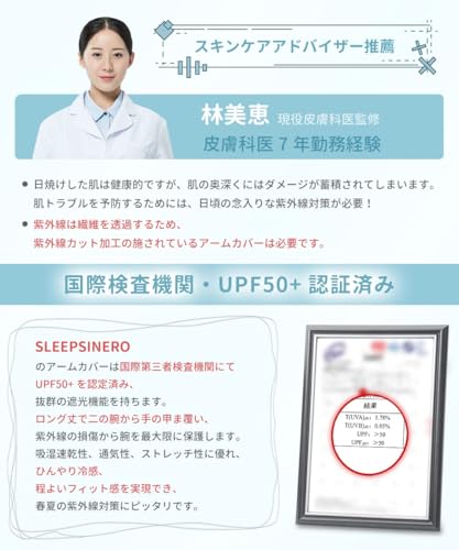 【国際検査機関にてUPF50+認証済み】国際第三者検査機関にてUPF50+を認定済み!蒸し暑さを感じさせず、炎天下でも快適に着用できるアームカバー レディースです。日焼けを防ぐために必要なUVカットの性能を兼ね揃えた、紫外線対策にはピッタリのアームカバーレディースとなっています。