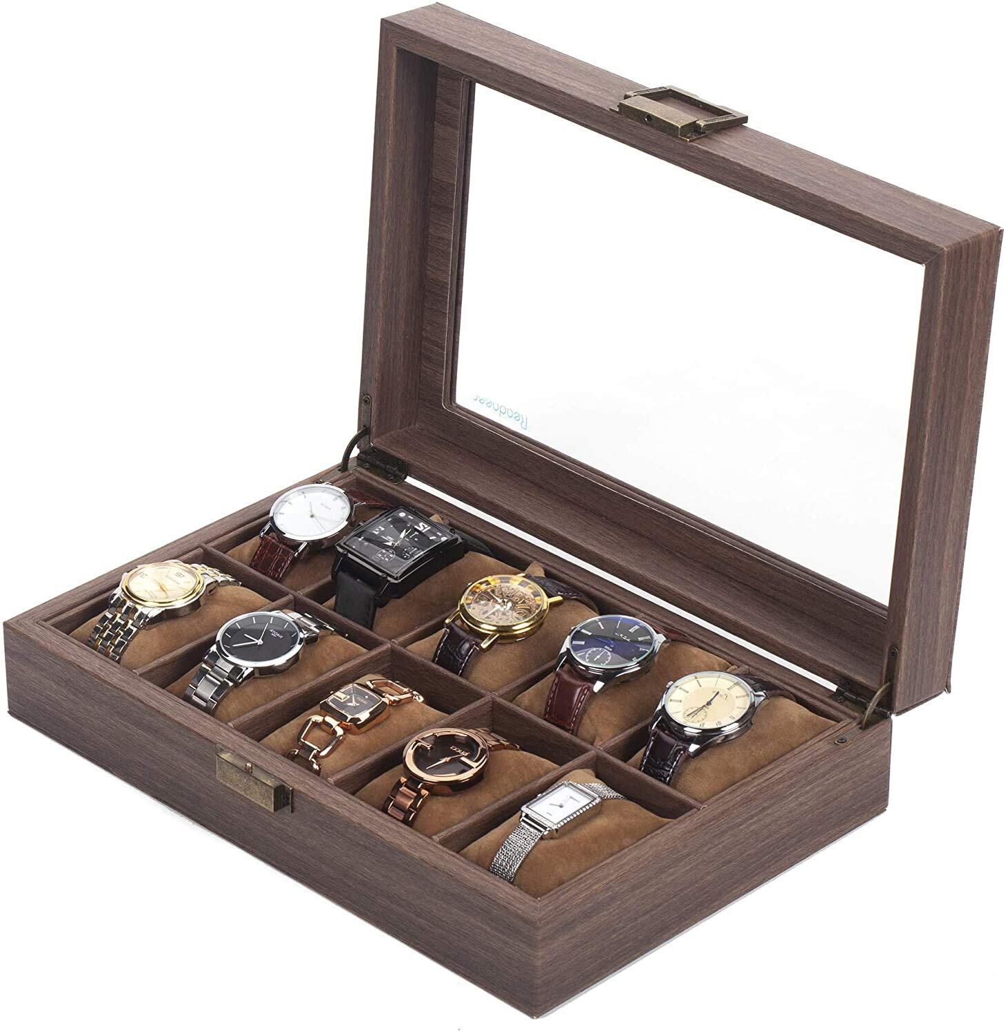 Reodoeer 木目PU 腕時計収納ケース 腕時計収納ボックス コレクションケース 10本用