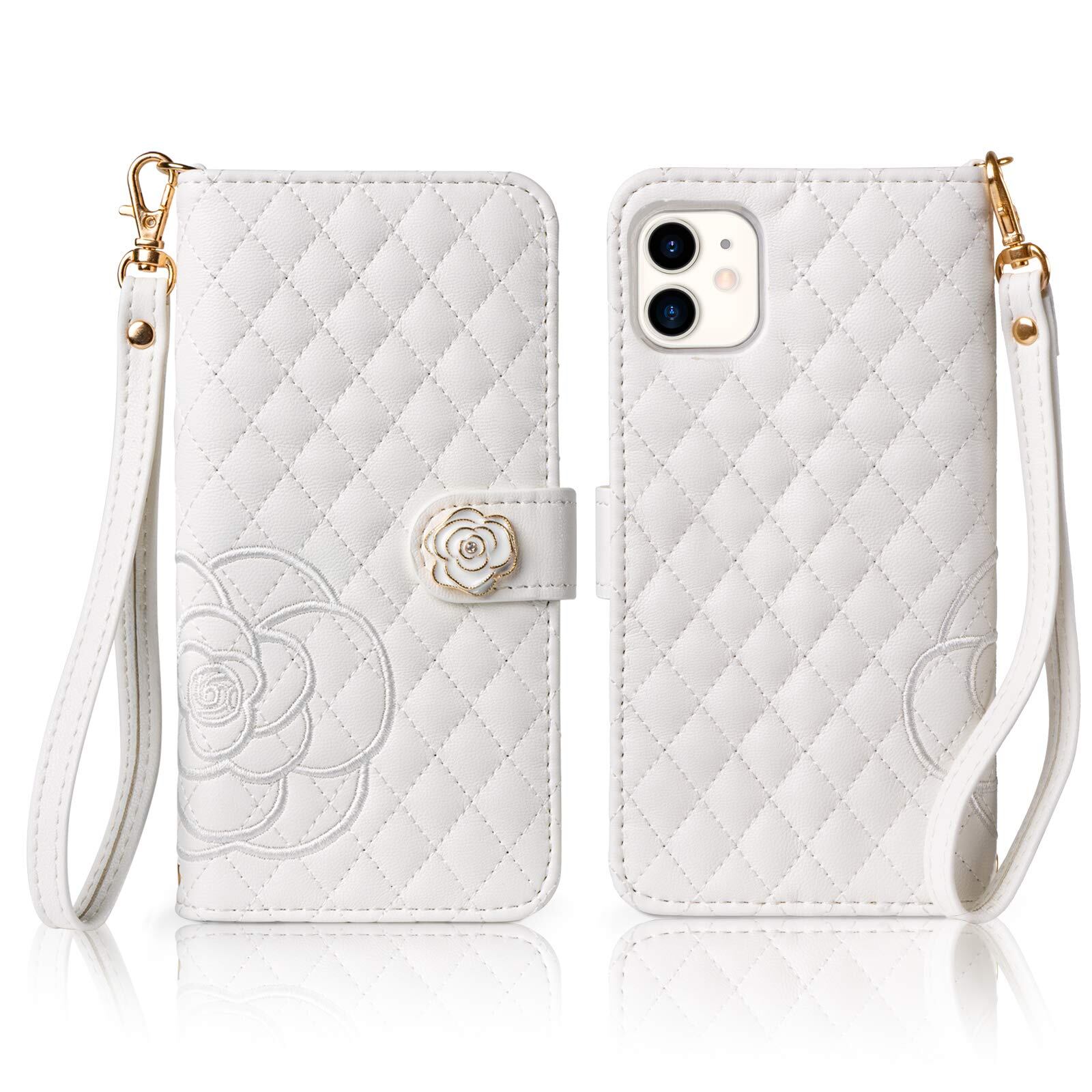 iphone12 ケース 手帳型 iphone12pro ケース 手帳型 薔薇 カメリア花柄 刺繍 高級レザー おしゃれ 女性 スマホケース iPhone12 手帳型 軽量 薄型 iphone12手帳型携帯ケース人気 可愛い タッセル アイフォン12 ケース 手帳型 耐衝撃 防水 あいふぉん12ケース カード収納 純正 財布型 お洒落 シンプル 全面保護 スマホカバー ブランド 横置きスタンド機能 iphone12 手帳型ケース おしゃれ ストラップホール付き (iPhone12 /iPhone12 Pro 6.1インチ ホワイト)