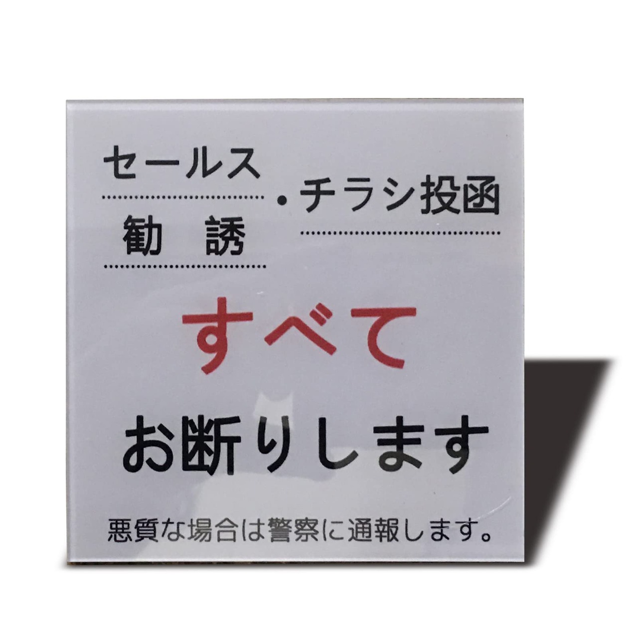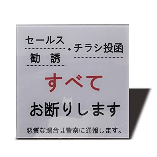 Seagron セールス チラシ 勧誘など一切お断りします サインプレート 両面テープ付き 注意 2㎜アクリル製 おしゃれ 耐水 耐候 ステッカー シール (グレー80×80㎜(1枚))