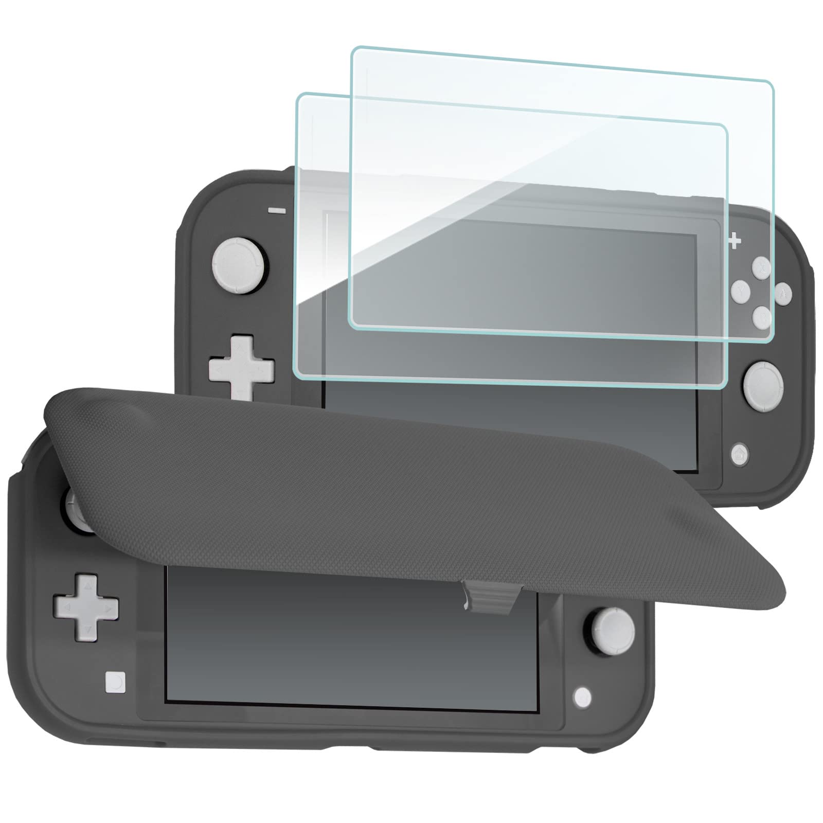 ProCase スイッチライト フリップケース [ガラス2枚付き] スリム クリアソフトTPU カバー 耐衝撃 保護カバー 対応機種: スイッチライト 2019 –グレー