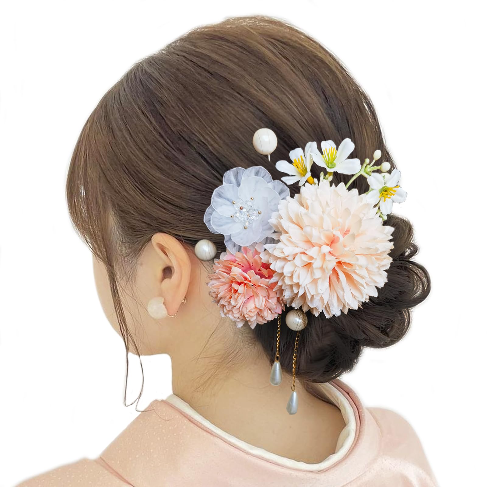 【Baramoly】 髪飾り 和装 着物 浴衣 プリザーブドフラワー 造花 花飾り 祭り 花火大会 成人式 結婚式 卒業式 七五三 ウエディング 謝恩会 かわいい 髪留め シャンパン