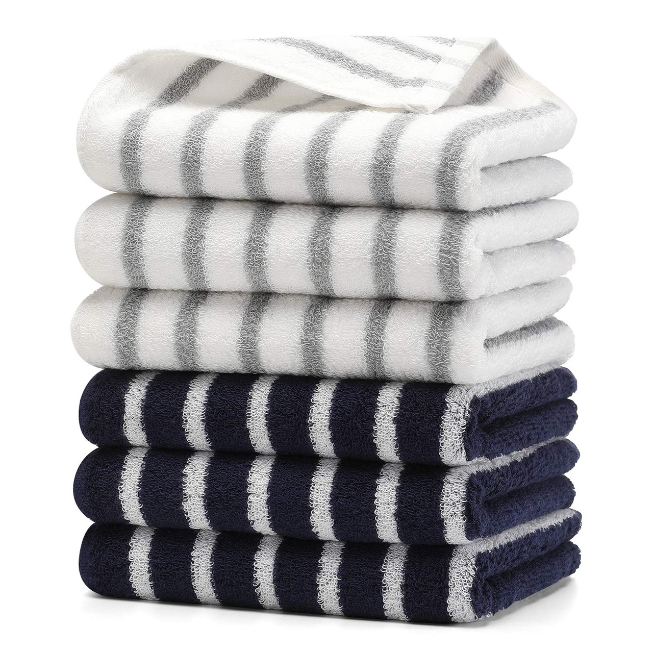 TMVOK フェイスタオル 6枚セット 綿100% 北欧風 タオル おしゃれ 無地 34*74cm 吸水速乾 抗菌防臭 ふわふわ スポーツタオル 大判 家庭用、ホテル、業務用 四季通用