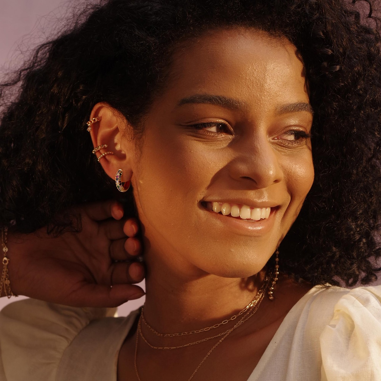 【装着が簡単でつけ心地が魅力】両耳セットイヤリング、装着の際にはピンの部分を内側に軽く押しながらカチッとはめ込んで下さい。キャッチレスフープピアス、さらに耳たぶをはさむ部分の接地面をしっかりとっているため、長時間着けていても痛くなりにくいのが特徴です。