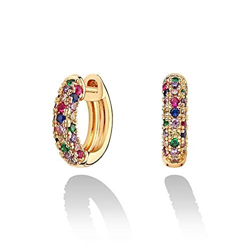 Fettero ピアス レディース リングピアス フープピアス アレルギーフリー 金属アレルギー対応 つけっぱなし サージカルステンレス 14k 人気 両耳用 (三面カラーダイヤモンド)
