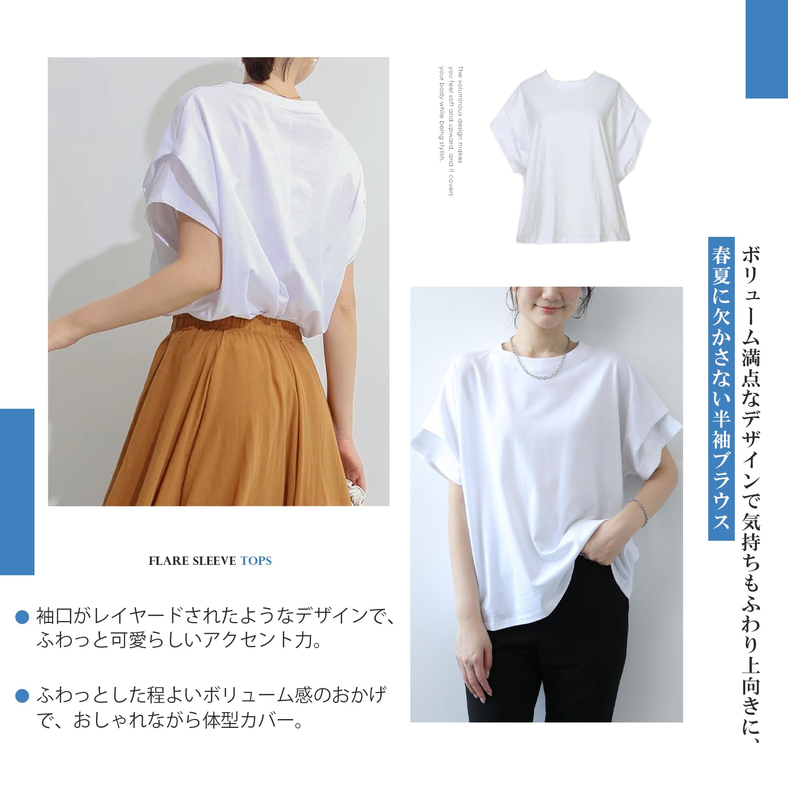 【着心地良い半袖Tシャツ】柔らて通気性の優れた素材で着心地が快適!程良い厚みの軽やかな生地感で、春から秋までロングシーズンで大活躍!軽やかさがあって、華やかに魅せてくれるトップスは、春夏の定番アイテムのひとつ。ちょうどいいのコンターでおしゃれ指数をアップ、可爱さとシャレ感の両立が簡単に叶う。モード感ある甘さで素敵に!上品見えで楽ちん、コーデに抜け感と遊び心をプラス!おでかけ先でも大好きなデザインにときめいて。