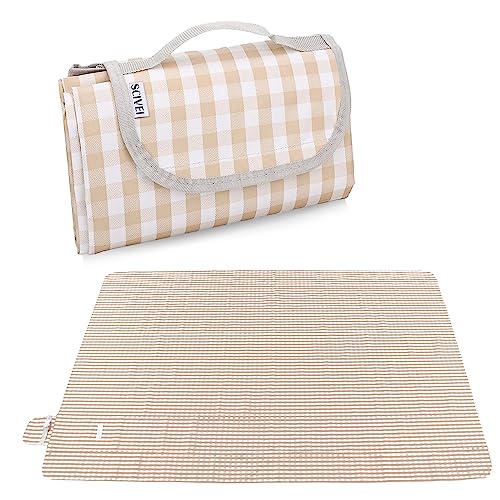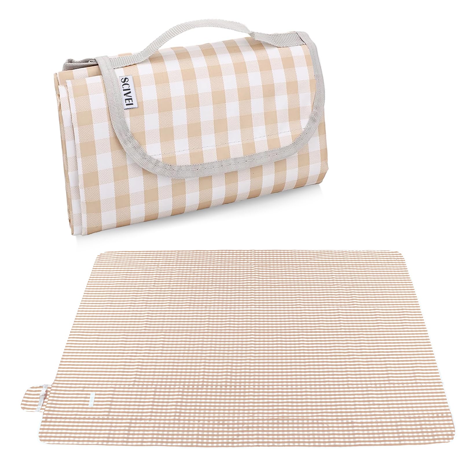 SCIVEI レジャーシート ピクニックマット 大判 150x200cm 3~6人用 折りたたみ 防水 防湿 コンパクト収納 軽量 遠足 運動会 お花見 キャンプ アウトドア チェック柄(コーヒーチェック)[日本語説明書付き]