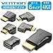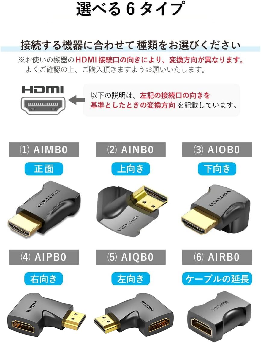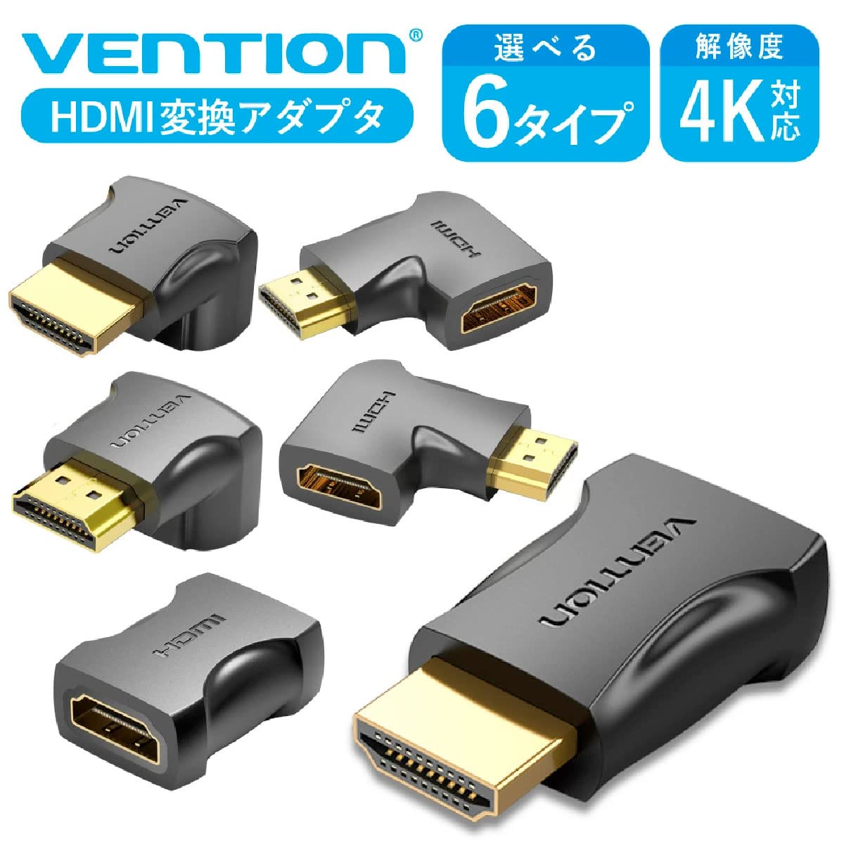 VENTION HDMI 変換アダプター 下向き 直角 オス-メス L字型 90度 4K対応 60Hz 金メッキ PVC 1個入り 延長 保護 拡張 1080P HD スリム設計 アダプター テレビ モニター プロジェクター PC ゲーム機 AV機器 ブラック