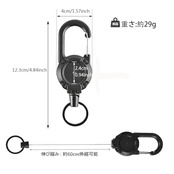 【素材、仕様】: リールキーホルダー ABSプラスチック(ボディ)、亜鉛合金(カラビナ)、金属ワイヤー(コード)、重さ:約30G、伸縮長:約60cm。