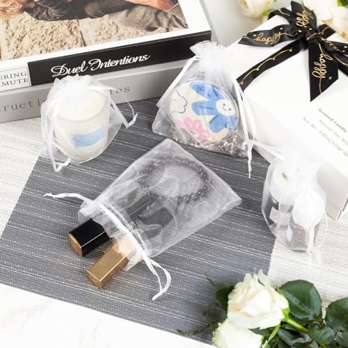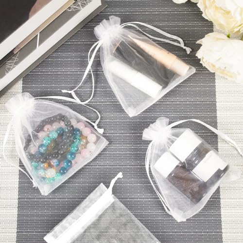 KAMMAK オーガンジー 巾着 袋 小 50 枚 オーガンザ 巾着袋 かわいい 無地 透明 おしゃれ プチ袋 ラッピング袋 プチギフト ジュエリー収納 ポプリ 小物入れ アクセサリー 白サシェバッグ 小分け袋 誕生日 結婚式 バレンタイン お返し プレゼント 包装用 ホワイト ギフトバッグ 10 x 12 cm