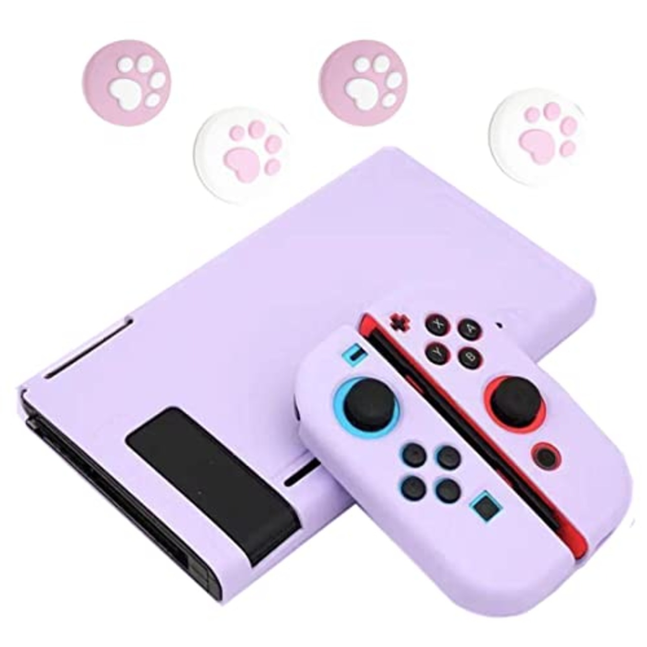 Switch用カバー&ジョイスティックカバー スイッチ用ケース カバー アナログスティックカバー 4x猫爪肉球 Joy-Con用カバー 全面保護ケース 耐久性tpu素材 キズ防止 衝撃吸収 着脱簡単 擦り傷防止 取り外し可能 指紋防止 可愛い (パープル)