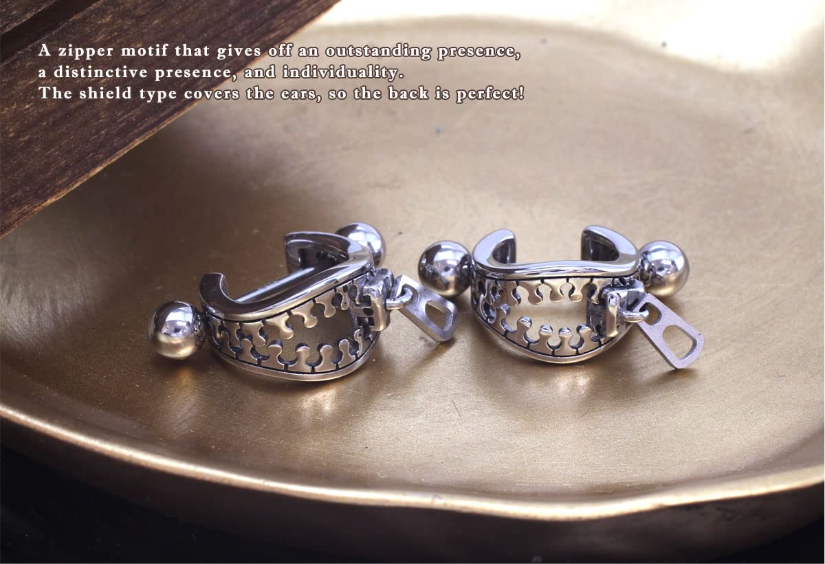 [ROQUE] ボディピアス 18G 16G 14G ジッパー モチーフ シールド ピアス 軟骨ピアス 金属アレルギー対応 (1個売り) 14G シルバー