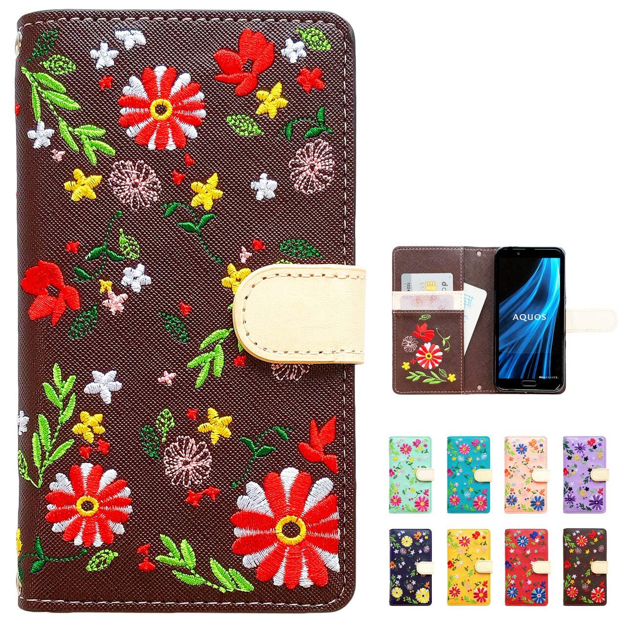 Galaxy A54 5G SC-53D SCG21 手帳型 ケース カバー SC53D SC-53Dケース SC-53Dカバー SCG21ケース SCG21カバー galaxya54 SC53Dケース SC53Dカバー GalaxyA51 手帳ケース 手帳型ケース スマホケース ちょいヌメ花刺繍 ブラウン
