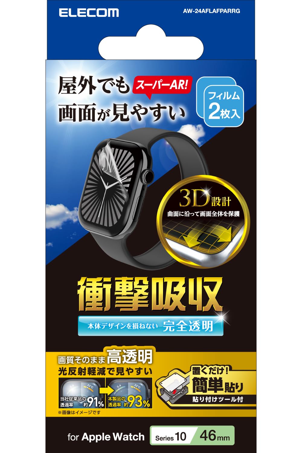ELECOM apple watch 11/10 フィルム 46mm 衝撃吸収 指紋防止 超透明タイプ 貼り付けガイドシール付属 AW-24AFLAFPARRG
