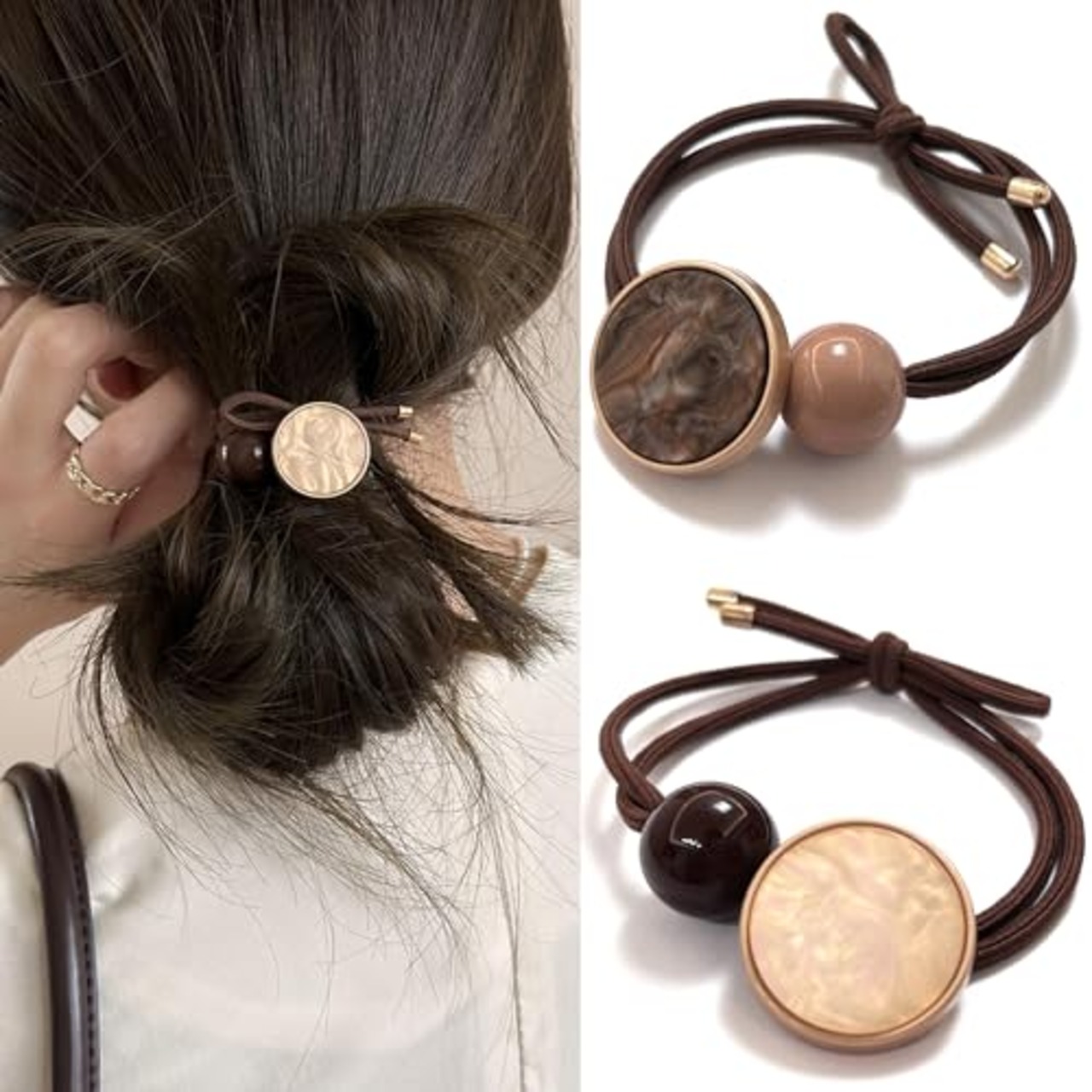 Natunofu ヘアゴム おしゃれ 大人 シンプル 輪ゴム 大人 オシャレ ヘアアクセサリー飾りつきヘアゴム かわいい 髪 飾り 髪ゴム ヘアーゴム 大人 御洒落 おしゃれ 輪ゴム レディース 髪飾り 可愛い ヘアゴム お団子 おしゃれ 髪ゴム 黒 髪ゴム お団子 韓国風 簡約 無地 上品 小物 ミルキーベージュ+コーヒー