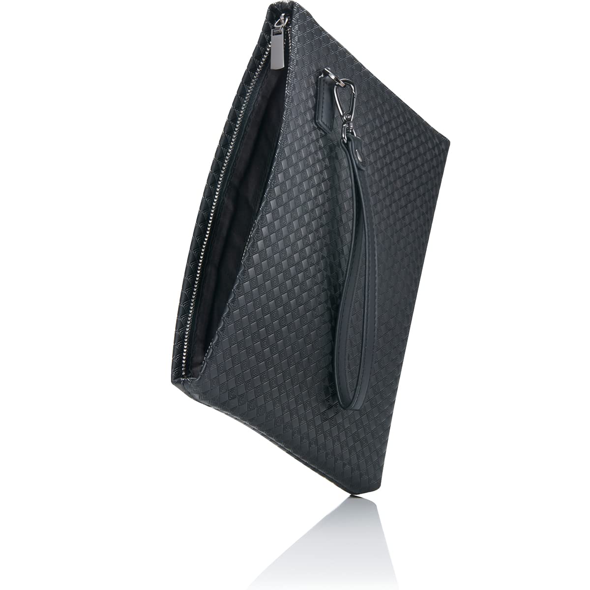 [NEESE] クラッチバッグ 選べる4デザイン 4つの小物ポケット A5・8.3インチタブレット対応 結婚式 冠婚葬祭 パーティ PUレザー フォーマル セカンドバッグ メンズ レディース (ジオメトリーブラック)