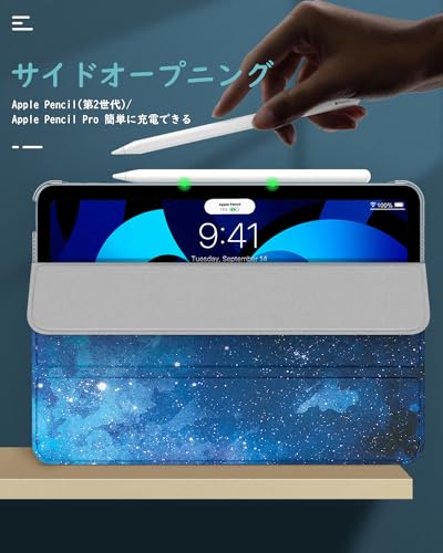 iPad Air 11インチ M3/M2 ケース 2025/2024 Dadanism iPad Air 11インチ/Air 5 Air 4 10.9インチ カバー Air 11 第7世代/第6世代 オートスリープ 三つ折り スタンドケース PU+PC 半透明 PencilPro/第2世代ワイヤレス充電 青い星空