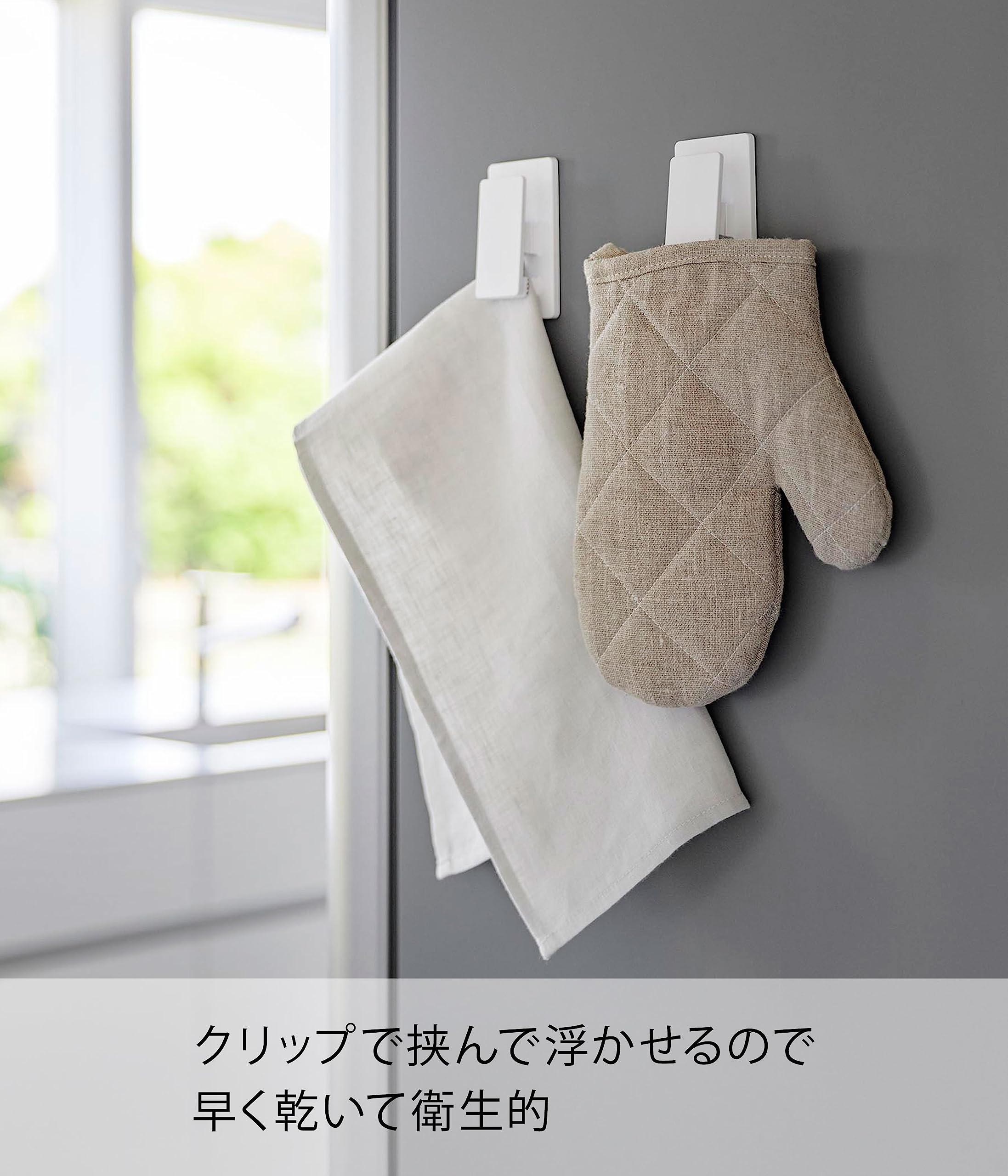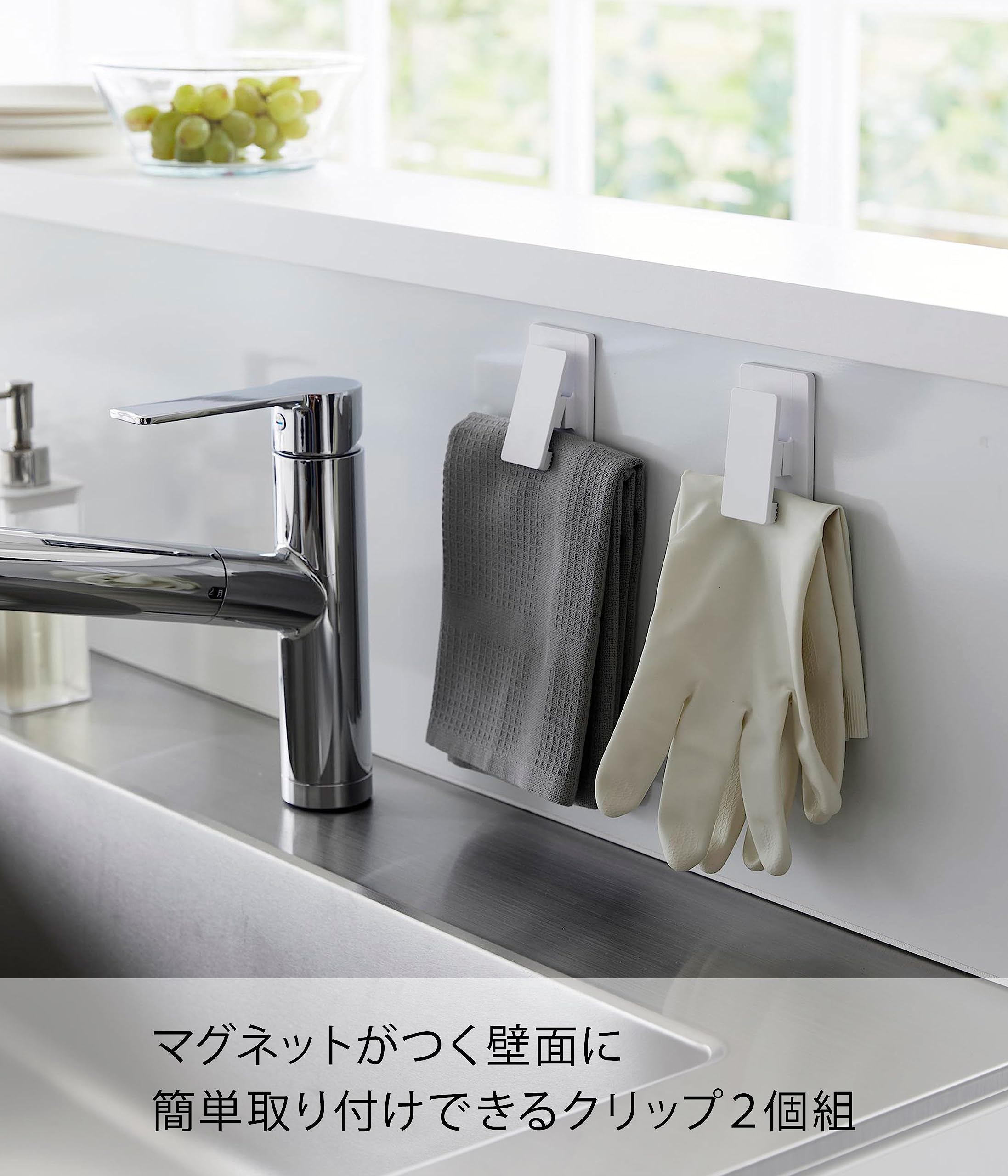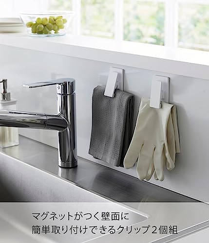 山崎実業(Yamazaki) マグネットクリップ 2個組 ホワイト 約W4.5×D2×H8cm タワー tower 布巾かけ キッチン収納 簡単取付 3669