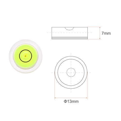 サイズ - 直径 13 mm、厚さ 7 mm の小さな気泡水準器。