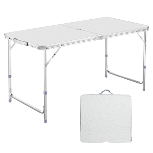 DesertFox キャンプテーブル アウトドア テーブル 折りたたみ 120cm 3段階高さ調整可能 ピクニック レジャー キャンプ用 折畳み コンパクト 収納 簡単組立006 (シルバー,シングル)