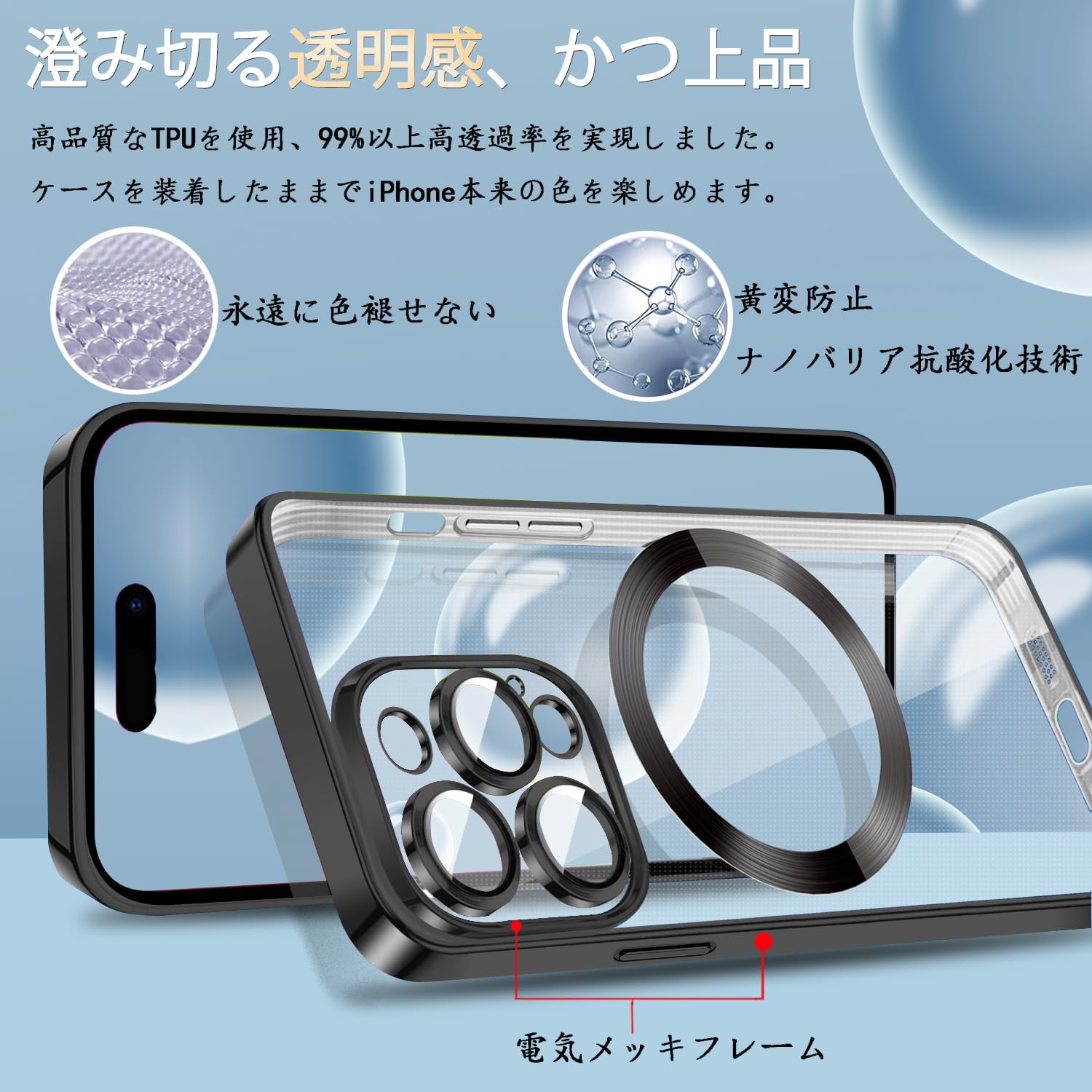 【驚きの透明さ】保護力が強いと同時に、ケースの全体が透明で、スマートフォン本来の美しさと高級感をそのままに楽しめます。