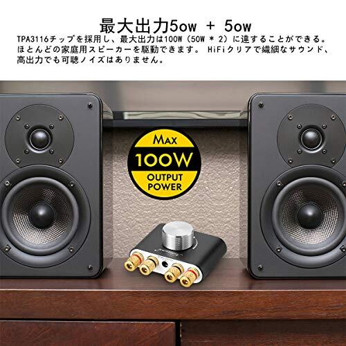 Nousoundの特製チップを採用され、最大パワーは100W(50*50W)になり、 ほとんどの家庭用スピーカーを簡単に駆動ですます。HIFIのクリアで繊細のサウンドで、大音量でもノイズがほぼありません。