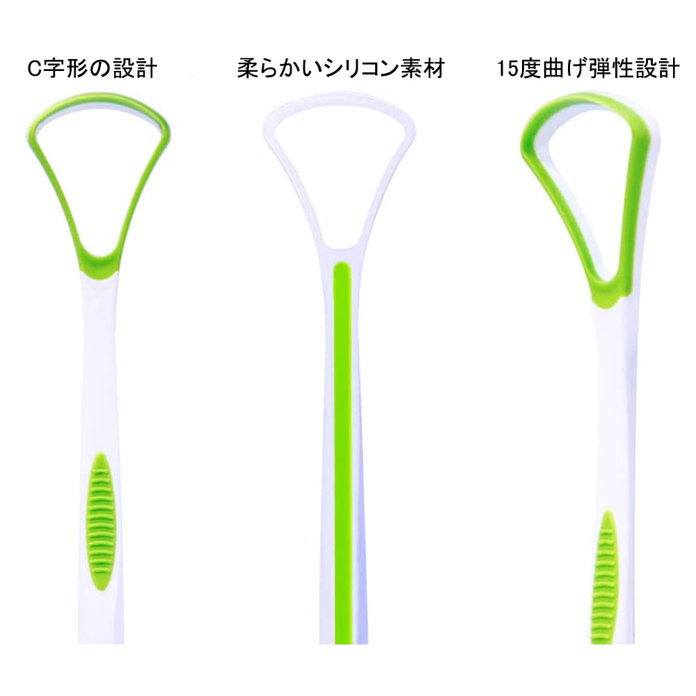 【簡単使用】毎日朝晩使います。舌ブラシを舌の表面にあて、舌の奥までシッカリ届くし持ちやすい。必ず舌の奥から手前に軽く引くようにして数回繰り返してください。また、凹面は舌の側面用です。舌に残っている汚れを徹底的に取り除き、息を新鮮に保ちます。口腔ケア、口腔環境改善。