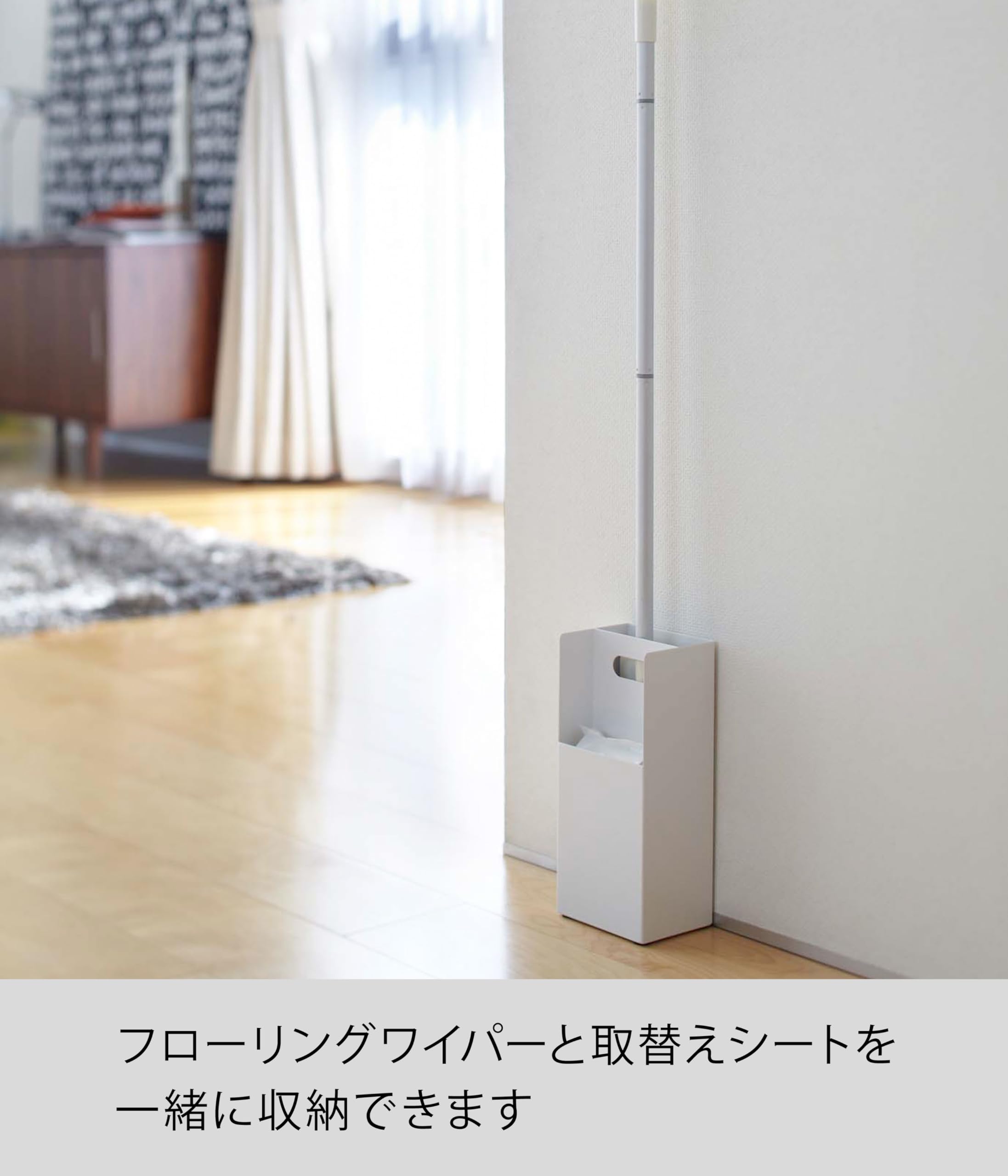 山崎実業(Yamazaki) フローリングワイパースタンド ホワイト 約W11×D9×H26cm プレート Plate 詰替シート収納 スリムに立てて収納 7860