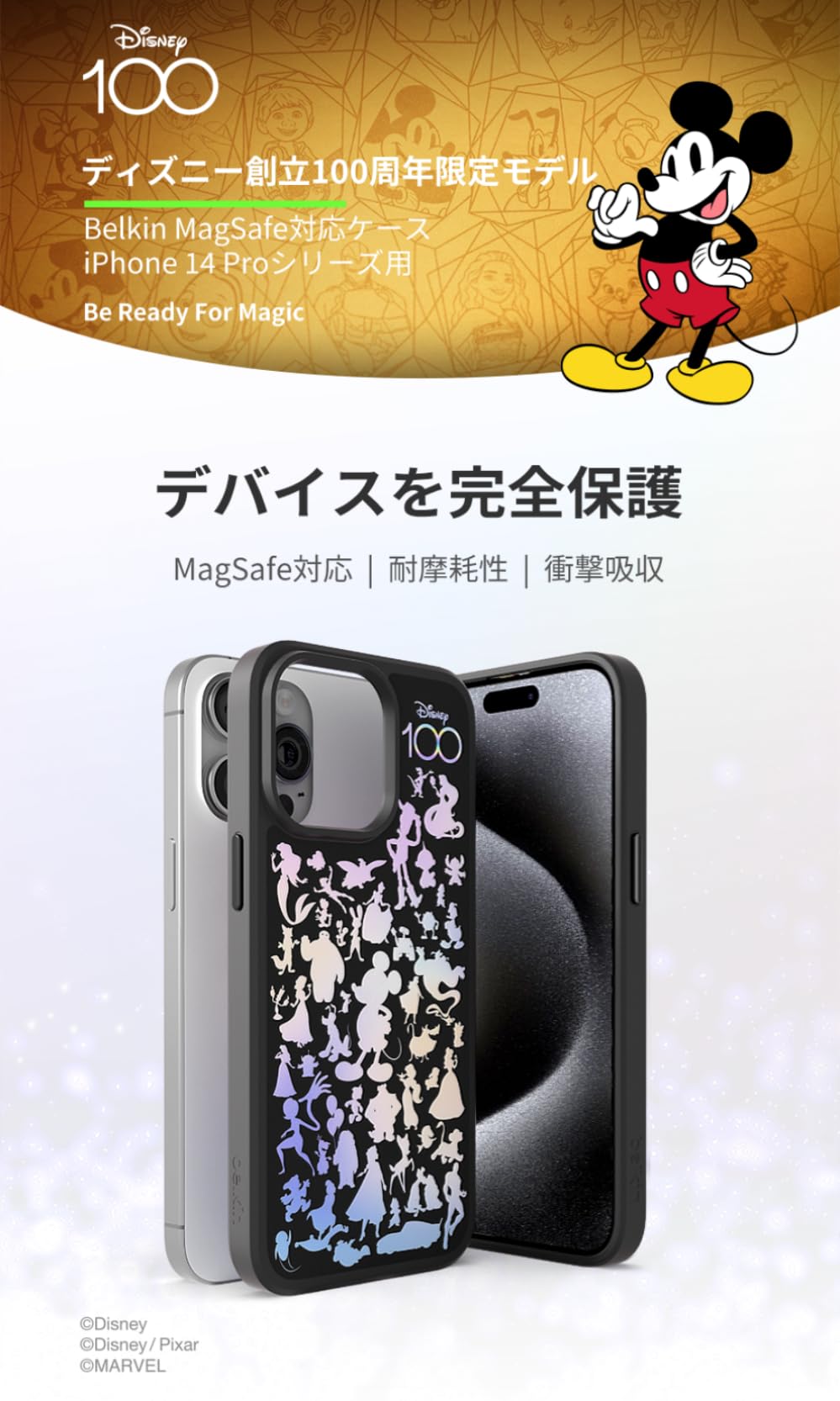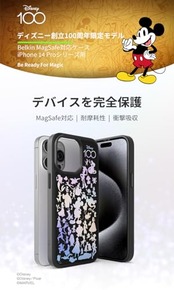 【ディズニー創立100周年限定モデル】Belkin iPhone 14 Pro用ケース MagSafe対応 マグネット搭載 薄型 超耐衝撃 UV耐性 黄ばみ防止 ソフトTPU ブラック MSA010qcBK-DY