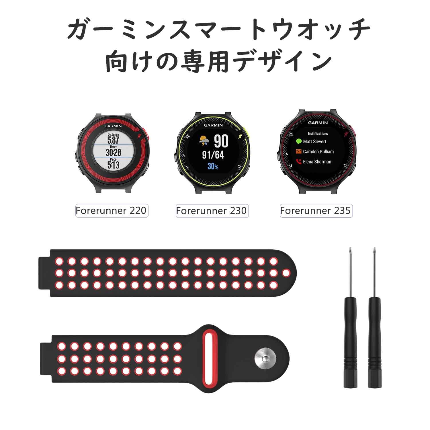 ガーミン用 ForeAthlete 235J/220J/230J/235J/620J/630J/735XTJ /Approach S20 / S5 / S6 ベルト 交換ベルト バンド ガーミン フォーアスリート235J シリコン製腕時計ストラップ/バンド 交換ベルト ドライバー2つ付き Black+Red