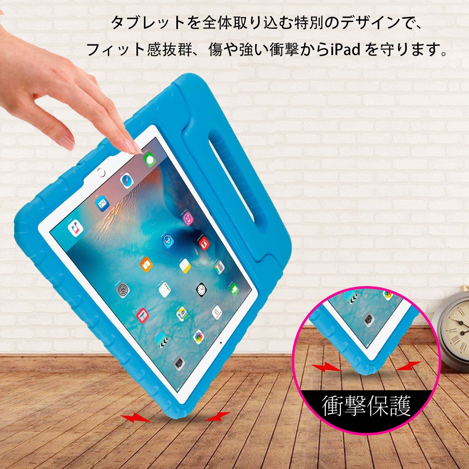 iPad 2018 2017 ケース アイパッド 2017 9.7 ipad air2 ipad air キッズ 超軽量 耐衝撃 スタンド ハンドル付き EVA 保護 新型 Apple iPad 9.7 2017 カバー (ブルー)