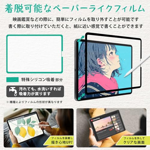 YMYWorld iPad Pro 11 (2022 第4世代 M2 / 2020 / 2018) / iPad Air 5 / iPad Air4 用 ペーパーライク フィルム 着脱式 保護フィルム 紙のような描き心地 上質紙 反射低減 アンチグレア