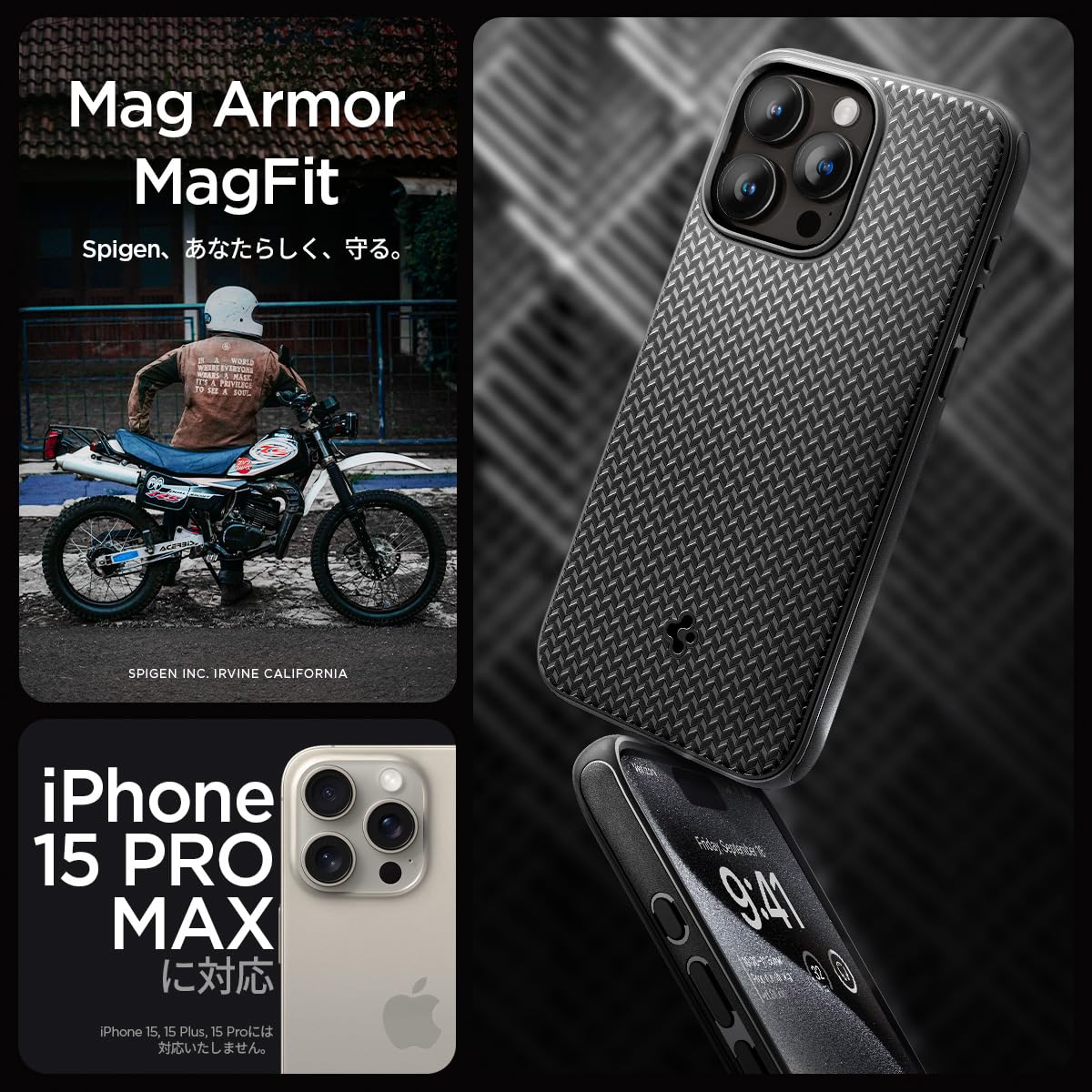 Spigen 【創業18年の技術力】 iPhone 15 Pro Max ケース Magsafe 対応 耐衝撃 米軍MIL規格 指紋防止 マグ・アーマー・マグフィット ACS06597 (マット・ブラック)
