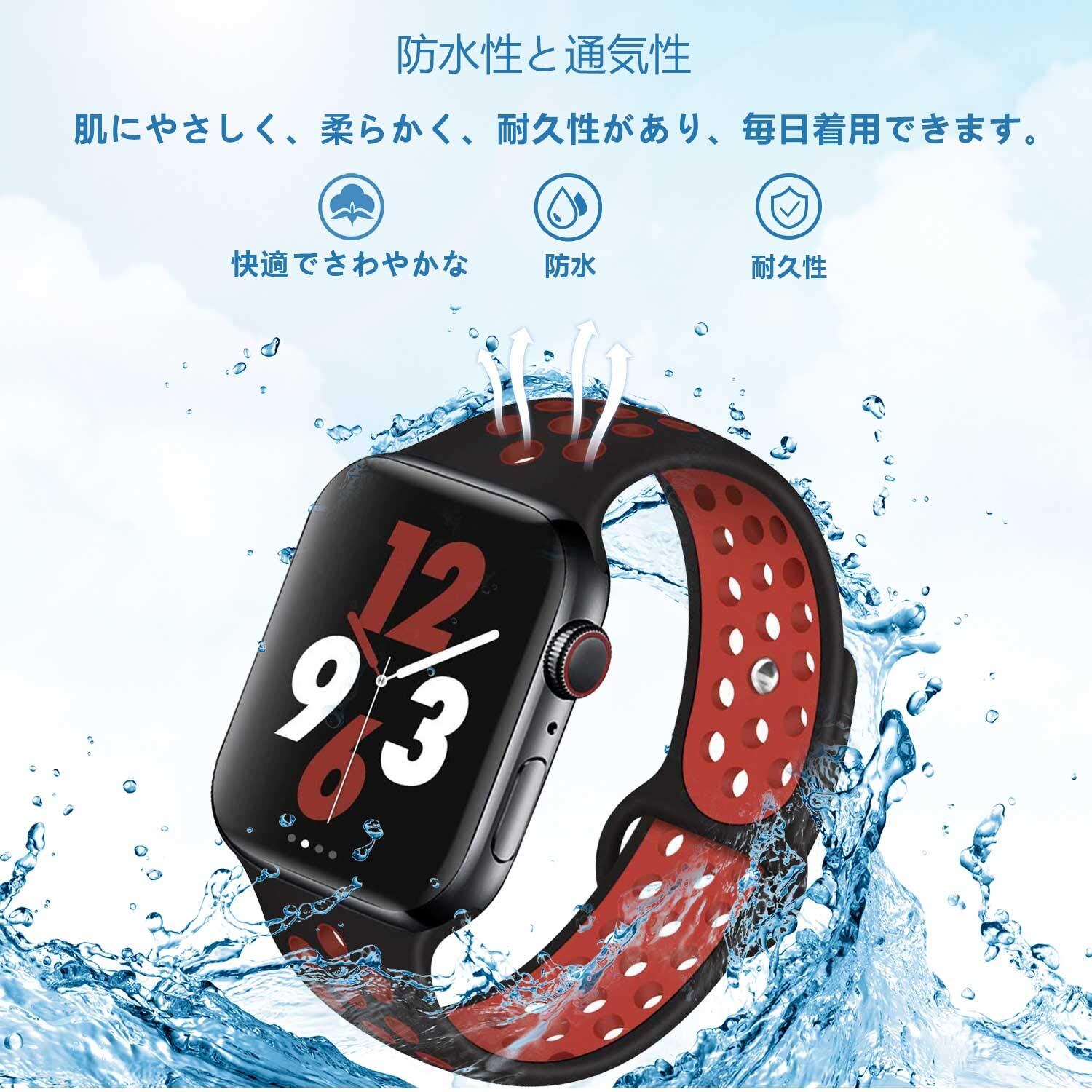 ZENGYQI コンパチブル Apple Watch バンド 38mm 40mm 41mm 42mm 44mm 45mmソフトシリコンバンド 通気性 スポーツシリコンストラップリストバンド交換バンドリストバンド iWatch series SE/8/7/6/5/4/3/2/1に対応 (42mm/44mm/45mm/49mm 黒/赤)