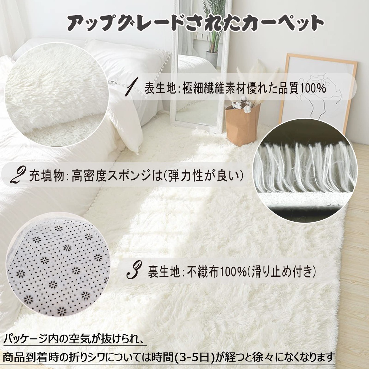 【とてもフワフワで、暖かいです】極細繊維素材100%で、ふわふわで弾力性にも優れています。毛足が長くてふかふかですが、コロコロでも毛が抜けないので掃除しやすくてとてもいいです。掃除機かければゴミも絡まずきれいになります。夏用の冷房対策、冬は床暖房・ホットカーペット対応。