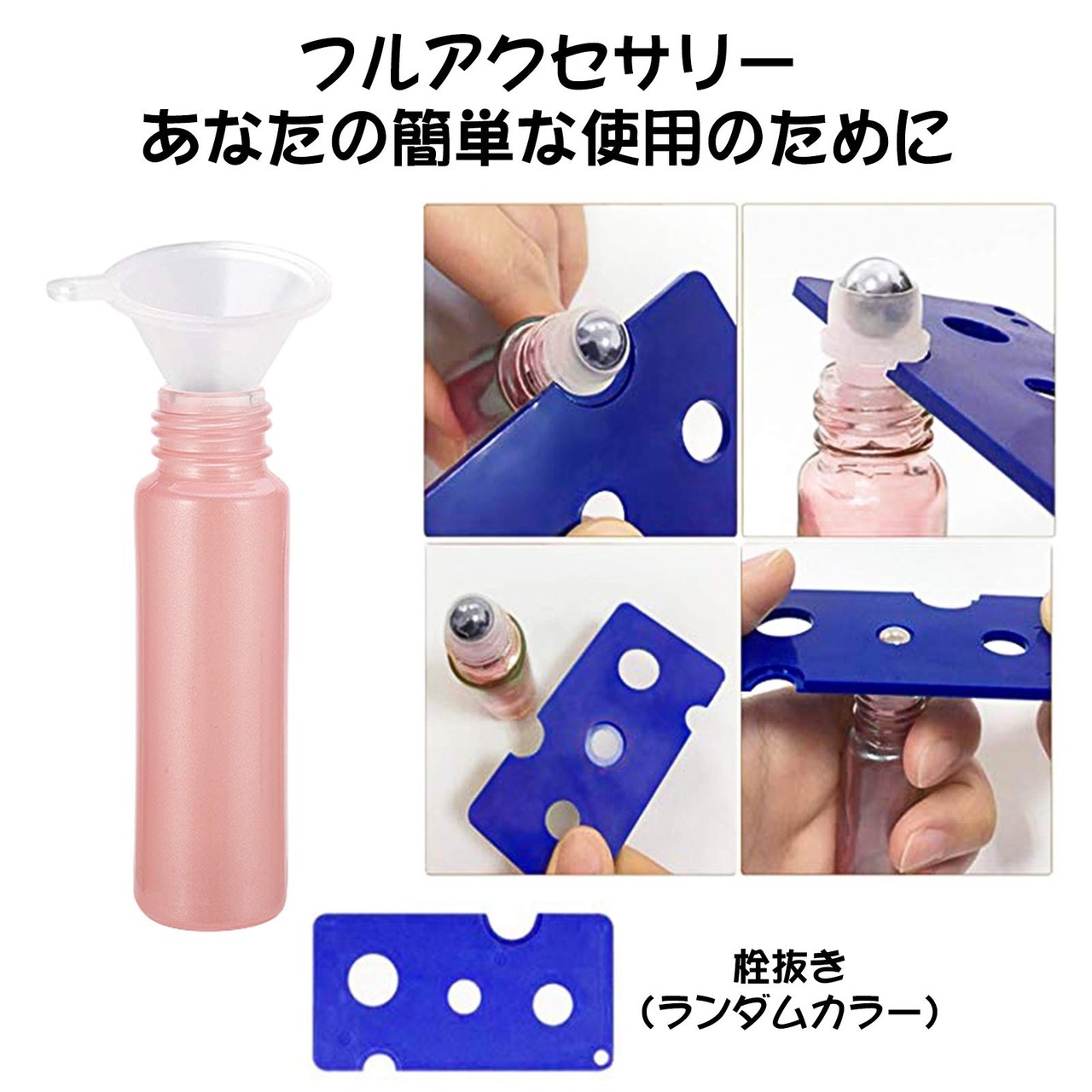 【便利性】手作り香水などの容器として人気のロールオンタイプですので、香水類を飛び散らせません。先端がスチールボールになっていて、コロコロとまわり、手を汚さずご使用いただけます。ボトルの色が違って、小分けしたオイルや手作り化粧水などを保存し、使用に超便利です。