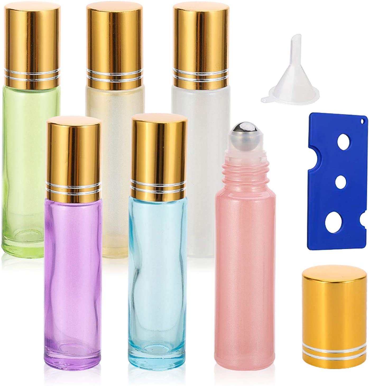 Yorkereynom ロールオンボトル 6本セット 10ml アロマ保存容器 ガラス容器 遮光 ミニボトル アトマイザー 香水 アロマ 見分け 携帯便利 精油 小分け用 アロマオイル 化粧水 手作り香水入れ 容器 遮光カラフル 精油小分け コスメ 詰替え 旅行用 携帯用 便利