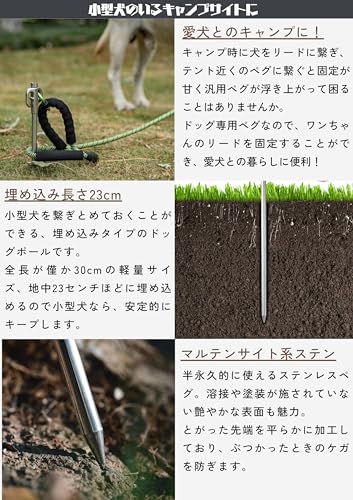 キャンピングムーン(CAMPING MOON) 係留用ポール 係留用ペグ ペット 小型犬用 ステンレス鋼420製 30cm 固い地面にも打ち込める 360度回転 K45-30