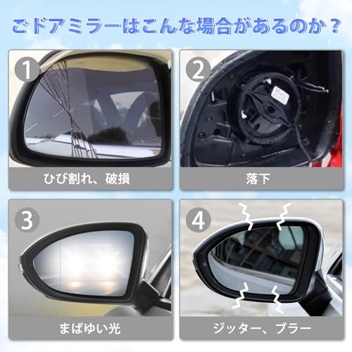 2.【製品素材】:本製品はABSやガラス素材で作成され、優れた耐熱性や耐久性を持っています。また、汚れ防止のため、本製品のガラス表面にフィルムを貼った状態で出荷しております。【セット内容】:ドアミラーレンズ左右。サイズ:約16.5cm×11cmごろです。