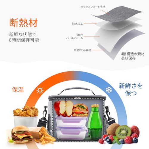 保温性が高い: ランチバッグは4重の断熱構造で、食べ物を冷たく、暖かく、または新鮮に6時間まで保つことができます。PEVAライニング、5mm厚の断熱パールフォームパッド、破れにくいオックスフォード生地、防水PUアウターコーティングで保護性を高めています。